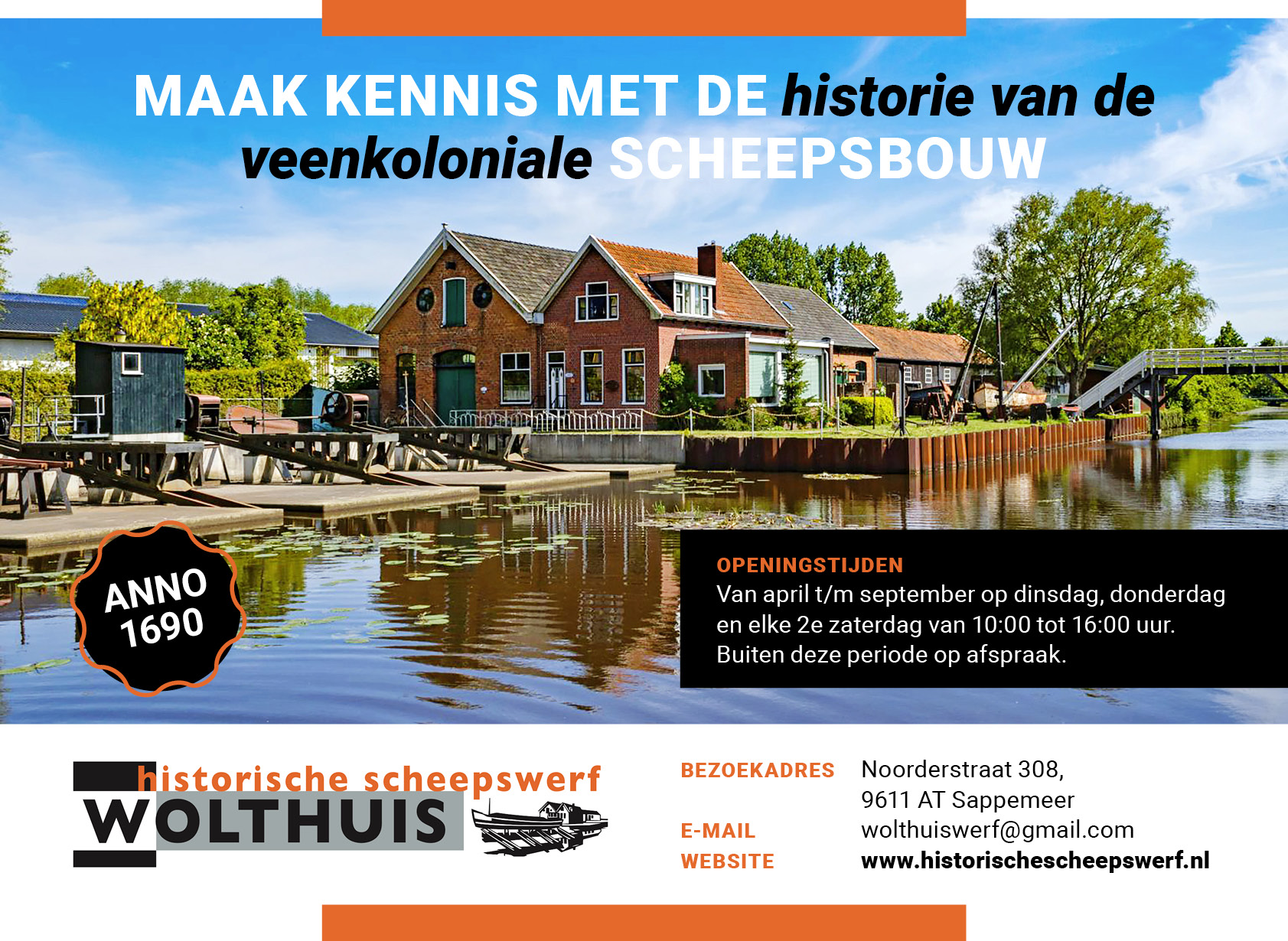 In 2013 werd de werf officieel geopend onder de naam Historische Scheepswerf Wolthuis en verkreeg hij de status van Rijksmonument. Het is een in werking zijnde museumwerf. Aan de ene kant is de werf in gebruik voor restauratie, reparaties en onderhoud van (historische) schepen en kleine opdrachten. Aan de andere kant is het een museumwerf, op de oorspronkelijke authentieke locatie, met exposities en demonstraties van originele oude gereedschappen en machines. Op de Historische Scheepswerf Wolthuis kan iedereen kennis maken met de historie van de veenkoloniale scheepsbouw.