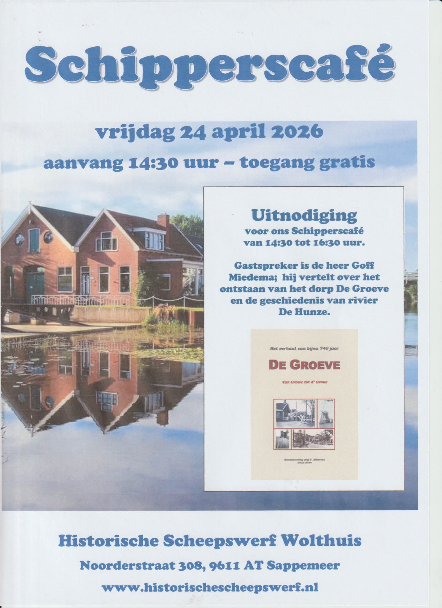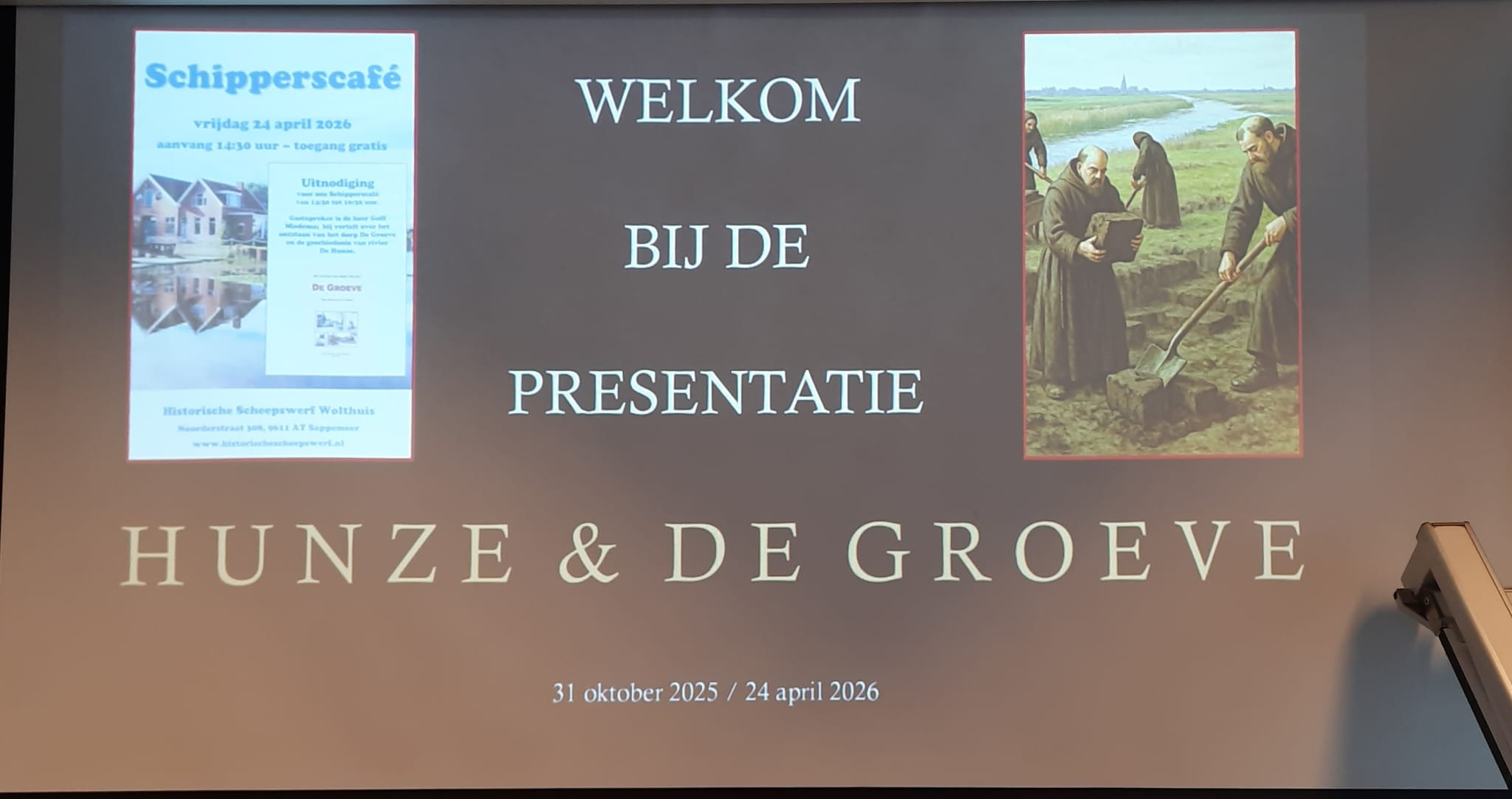 Hij geeft een presentatie over het ontstaan van het dorp De Groeve en het belang van de rivier De Hunze voor de ontwikkeling van het veengebied op de grens van Groningen en Drenthe; de Hunze vormde de verbinding met de stad Groningen en de Waddenzee.