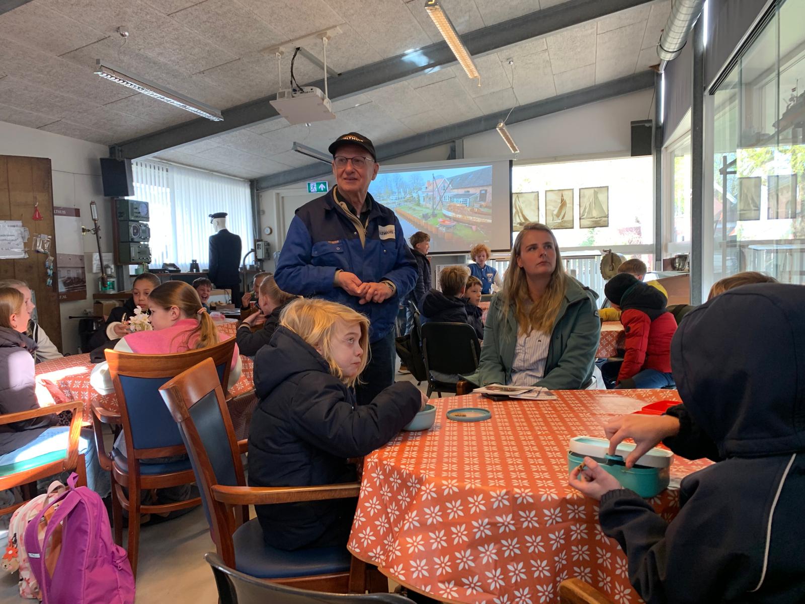 Vanmorgen kwamen er ruim twintig kinderen van groep 6-B van school de Braskorf uit Veendam, onder begeleiding van leerkrachten en ouders, bij ons op de werf voor een rondleiding. Onze vrijwilligers Ubbo, Guus en Bert gaven hen uitleg over het verleden en heden van de historische scheepswerf. De kinderen waren zeer geïnteresseerd en genoten met volle teugen van de verhalen en de demonstratie van enkele machines. Het was een mooie ochtend en volgende week hopen we net zo’n mooie ochtend te beleven met groep 6-A.