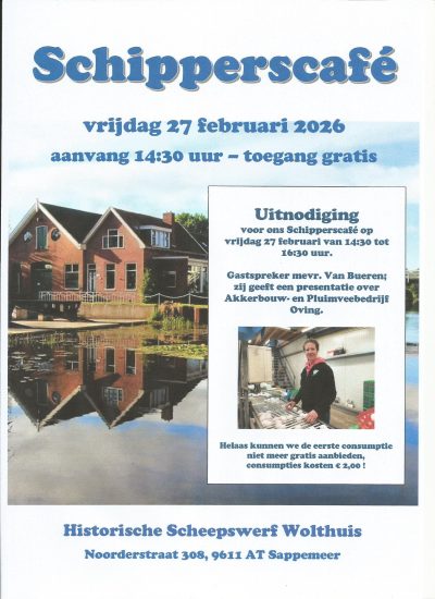 Hierbij nodigen wij u graag uit voor het Schipperscafé op vrijdag 27 februari 2026, aanvang 14.30 uur.
